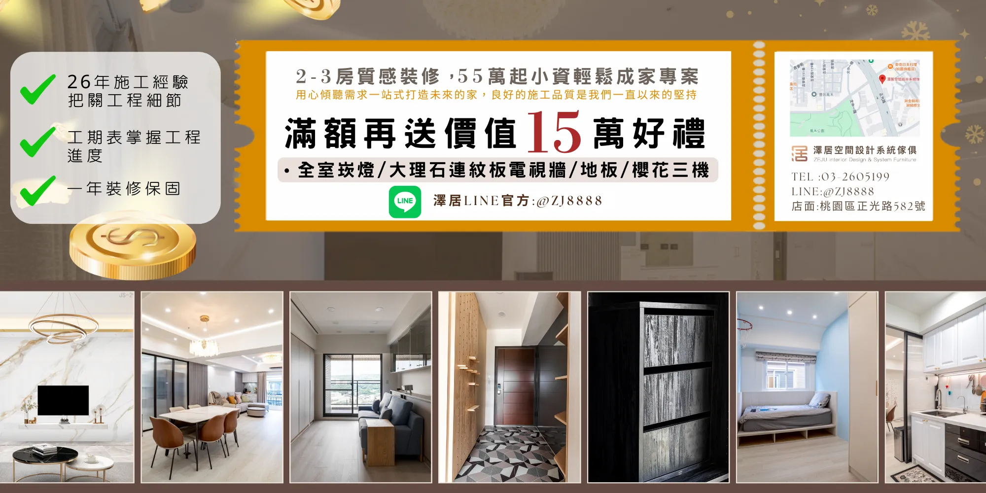 年底裝修免費升級 ! 滿額最高贈送15萬好禮! (贈全室崁燈/大理石連紋板電視牆/櫻花三機/Sharp電子鎖)